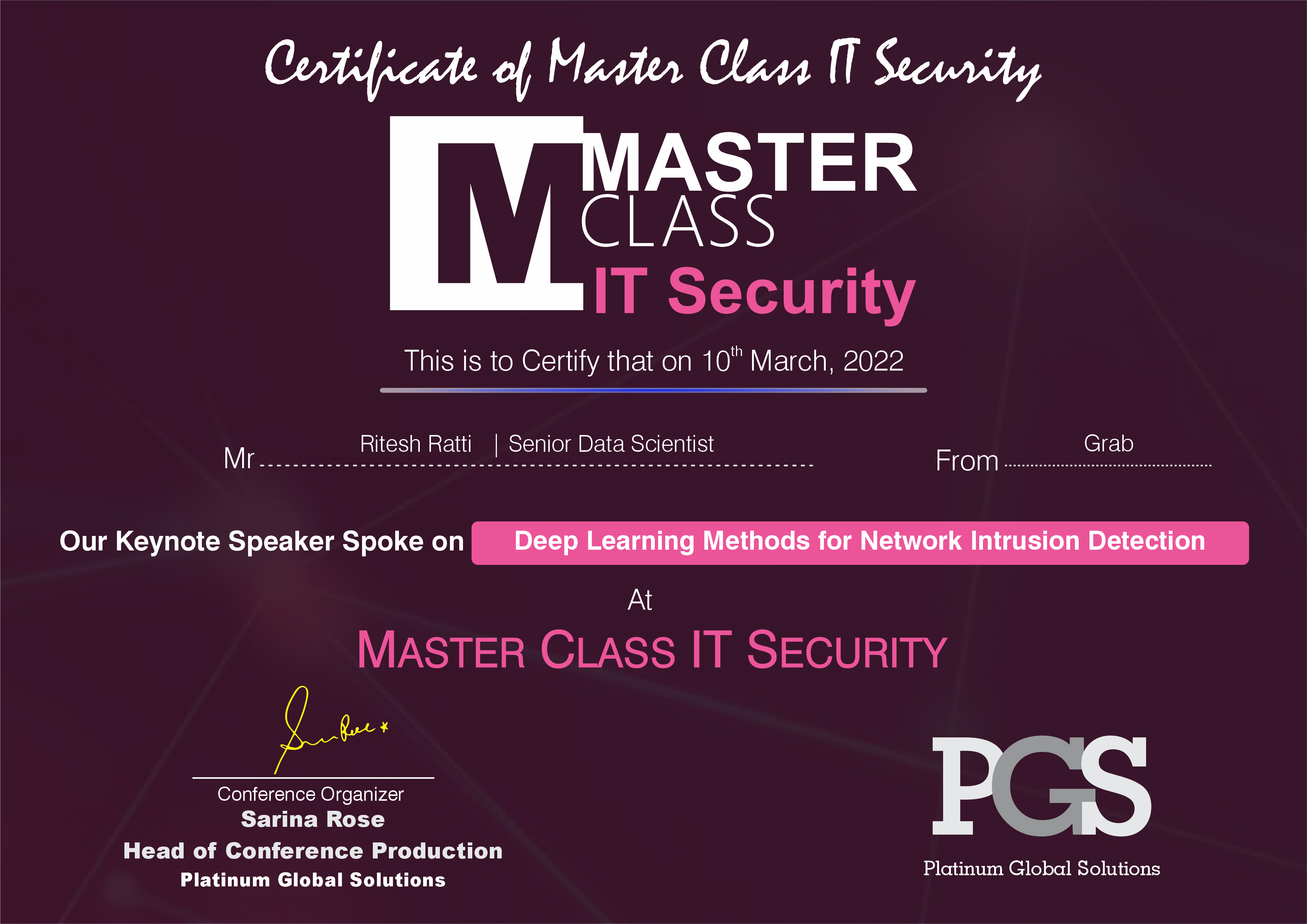 PhD research focus on unsupervised learning methods for network intrusion detection, with multiple IEEE publications and conference presentations on NIDS architectures.